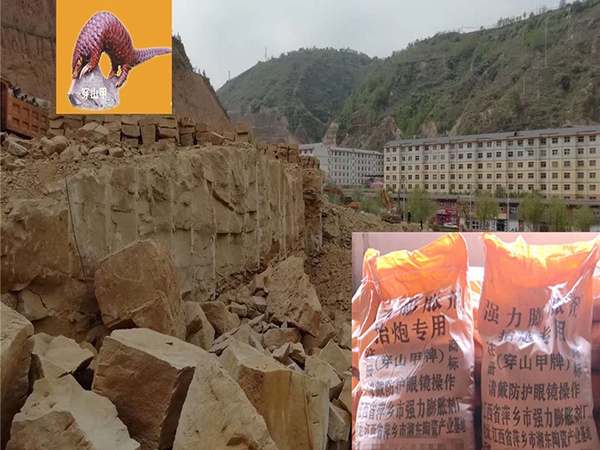 石頭靜爆劑是一種用來(lái)破除石頭的膨脹劑產(chǎn)品。產(chǎn)品標準歸類(lèi)于《水泥制品》中,代號為:JC506-2008。穿山甲牌石頭靜爆劑可以容易地控制被破碎體破碎完成后的形狀。整體施工簡(jiǎn)單,易操作:本品用潔凈水攪拌后灌入鉆孔中捅緊即可,不需工種。操作人員培訓時(shí)間很短。石頭膨脹破碎使用中無(wú)聲、無(wú)振動(dòng)、無(wú)飛石、無(wú)沖擊波。